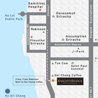 スクムビット沿い、シラチャの中心地でロビンソンデパートが直ぐ向かいにあり、イオンモールも徒歩圏内と大変好立地です。